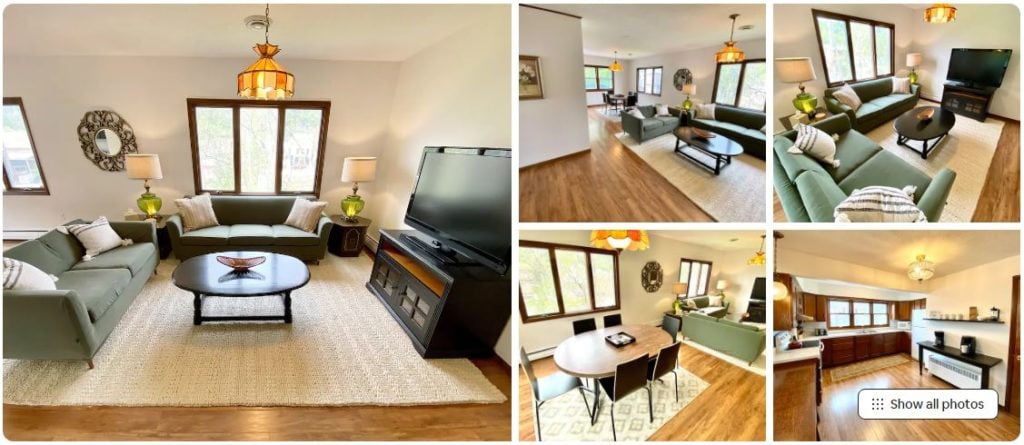 “Grandma’s Trail House: Top Floor” sleeps up to 12 Guests and features over 2800 sq. ft. of your own private indoor space including 6 bedrooms, and 6 bathrooms. Each bedroom has a private bathroom, queen size bed, and smart TV. Private Amenities include a full kitchen, formal dining room, washer & dryer, sitting room, TV room, and free high-speed WiFi. Outdoor spaces to enjoy include a wrap-around porch, patio & deck. Free on-street parking, keyless entry, and Google Assist smart speaker. Please note that this rental is located on the 2nd floor of the home, climbing 1 flight of stairs is required to access your stay.